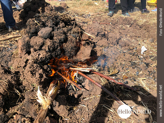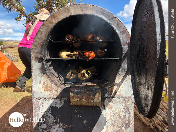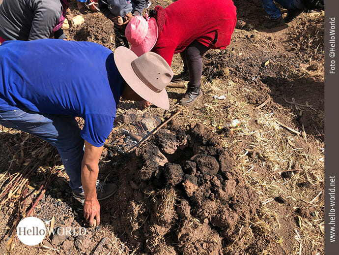 So haben wir zum Beispiel in einem kleinen „Workshop“ gelernt, wie Papas – peruanisch für Kartoffeln – in Erdlöchern gekocht werden.