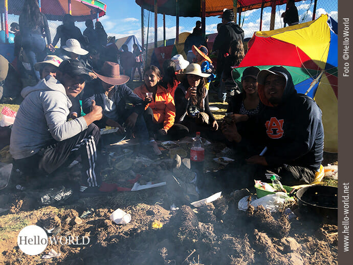 Als wir unten ankamen und zwischen all den Menschen standen, wirkte alles wie ein riesiges Familienpicknick auf uns. Hier feierten diejenigen „Inti Raymi“, aus deren Kultur das Fest einst entsprungen ist, erklärte man uns. Und dieses Feiern verlief unglaublich friedlich. Kein Geschubse, kein Anpöbeln, vielmehr ein fließendes Miteinander. Wir spürten regelrecht, dass es allen nur darum ging, die Zeit zusammen zu genießen, sich ein wenig auf alte Traditionen zu besinnen und einen Tag lang den Alltag hinter sich zu lassen: bei Gesprächen und beim Spielen mit schlichtesten Mitteln, ohne HighTech und fliegenden Untertassen, dafür aber mit ungeheuer viel Freude.